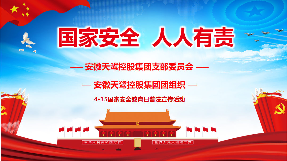 今年4月15日是第六個全民國家安全教育日,為深入學習貫徹黨的十九屆五中全會精神,貫徹落實中央政治局第二十六次集體學習會議精神,2021年4月15日上午,安徽天鷺控股集團黨支部及團組織在集團會議室組織開展了主題為“國家安全 人人有責”的國家安全教育日法治宣傳教育活動。