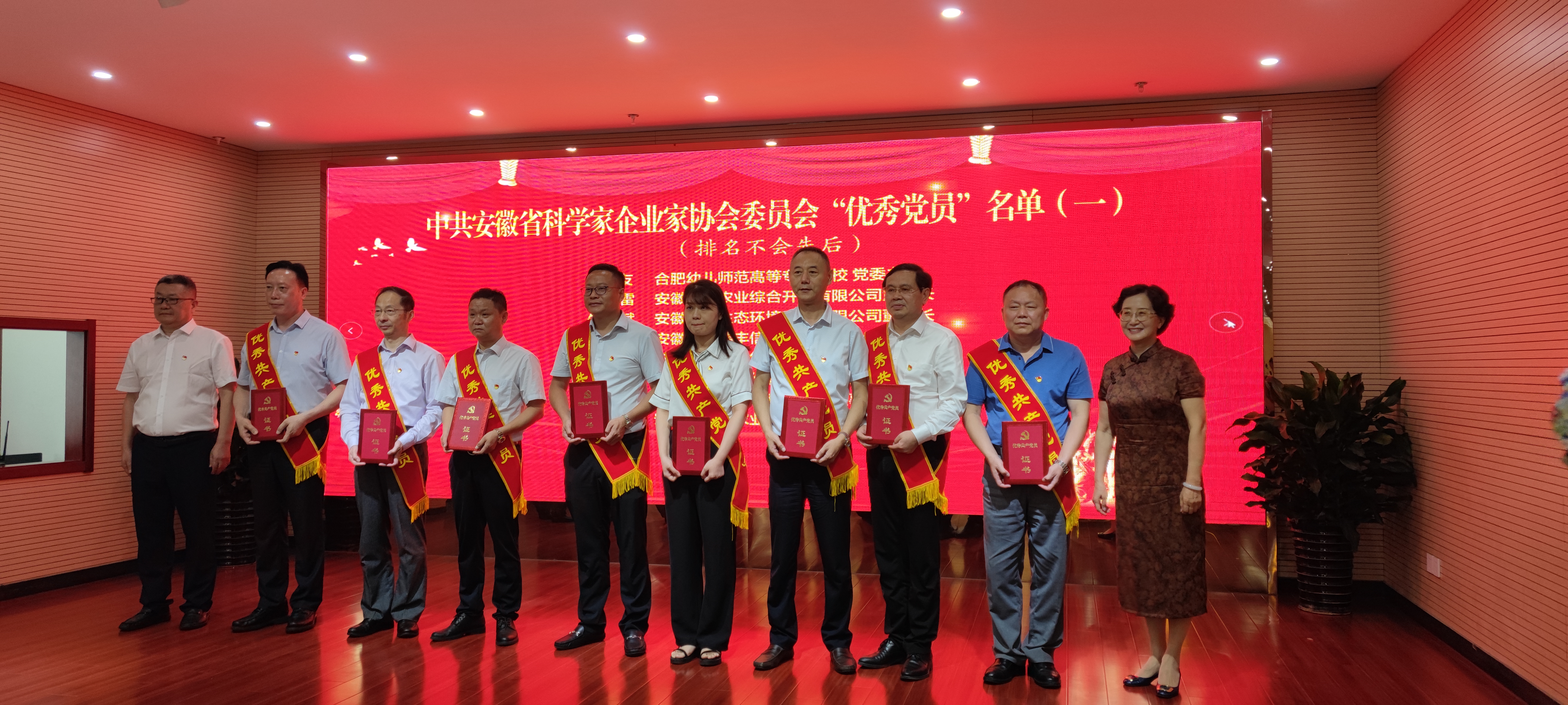 會上,宣讀了中共安徽省院士專家聯誼會委員會《關于授予彭壽等38名共產黨員“優秀共產黨員”的決定》和中共安徽省科學家企業家協會委員會《關于授予常印佛等42名共產黨員“優秀共產黨員”的決定》,并由徐景仁、張恩水、劉自林、汪滬敏、戴建華等分別為優秀黨員頒發榮譽證書。我集團姚廣傳董事長榮獲“優秀共產黨員”稱號并上臺接受表彰。