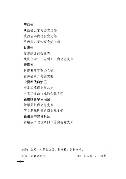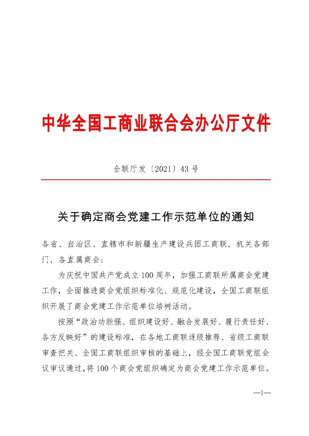 為慶祝中國共產黨成立100周年,加強工商聯所屬商會黨建工作,全面推進商會黨組織標準化、規范化建設,全國工商聯組織開展了商會黨建工作示范單位培樹活動。按照“政治功能強、組織建設好、融合發展好、履行責任好、各方反映好”的建設標準,在各地工商聯逐級推薦、省級工商聯審查把關、全國工商聯組織審核的基礎上,經全國工商聯黨組會議審議通過,將100個商會黨組織確定為商會黨建工作示范單位。安徽省新興產業協會黨支部獲評全國“商會黨建工作示范單位”榮譽稱號。