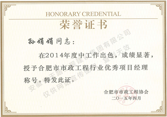 • 市政工程行業優秀項目經理