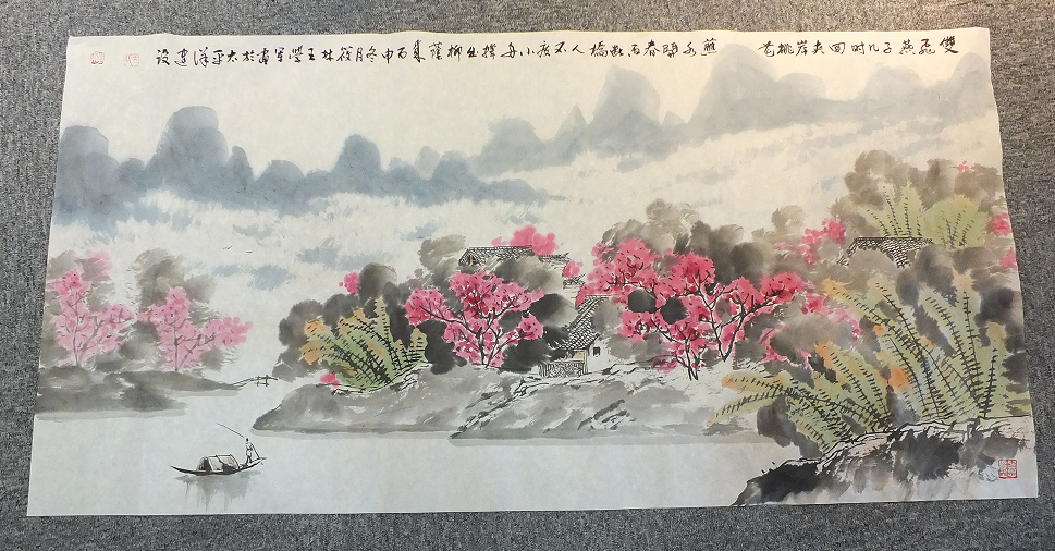 王學軍先生原名王筱林,號無逸齋主,江蘇淮陰人,作品多次在全國、省、市的美展中參展并獲獎,部分作品被藝術博物館收藏;作品展銷美國、法國、英國、德國、澳大利亞、新加坡、香港、澳門、臺灣等國家和地區。其繪畫作品可謂妙筆生花、栩栩如生,現場繪制的春游圖生動形象、層次鮮明,并配以徐府的《春游湖》詩一首,自是相得益彰。
