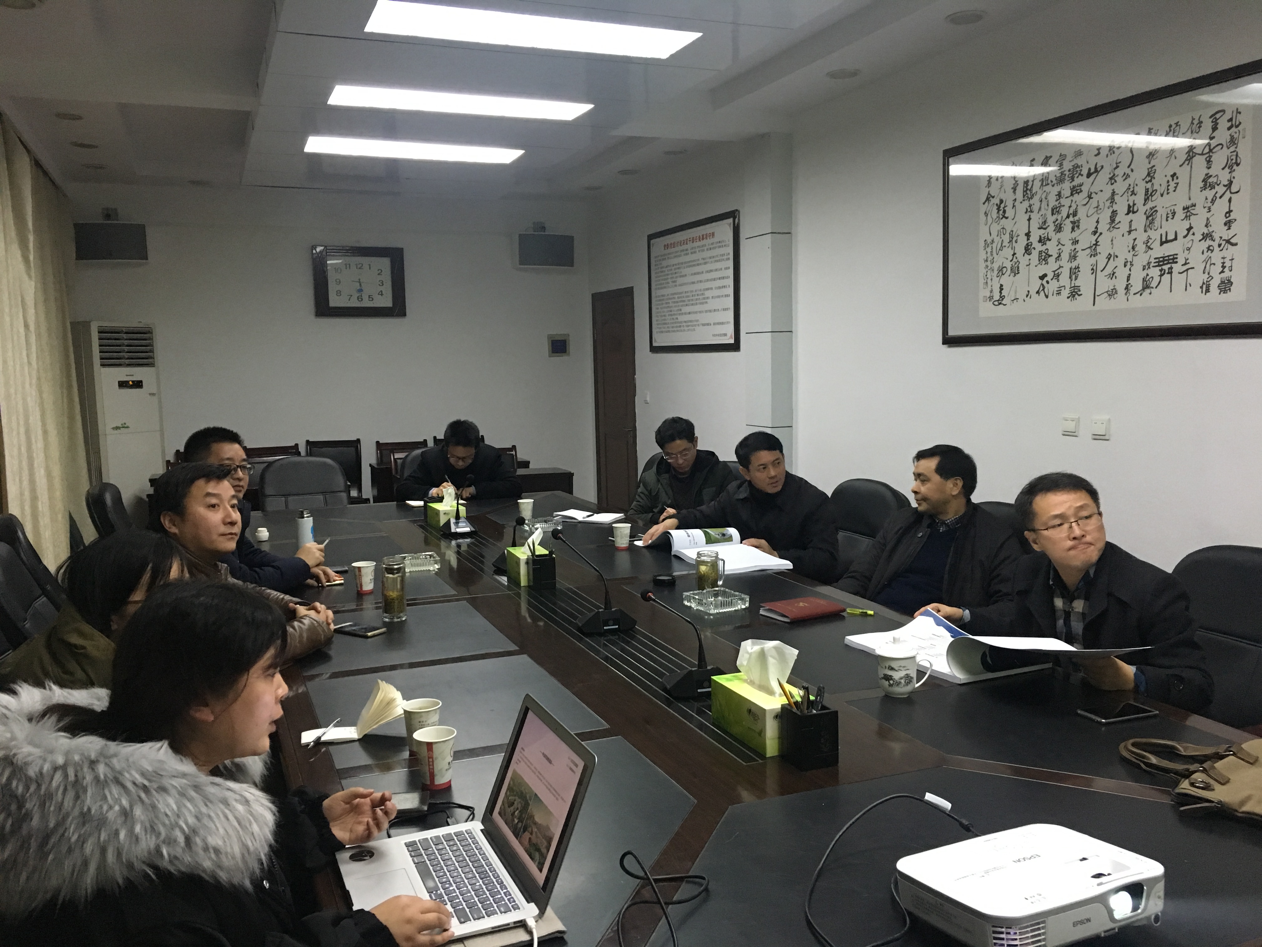 會上,杭州華清規劃設計師黃浩詳細介紹了目連山規劃設計方案初稿,得到了石臺縣委副書記鞏文生及相關領導的一致認可。鞏書記表示,太平洋建設位列世界500強第89位,擁有強大的“資源、智慧、資本”優勢,希望我方及規劃院就目連山規劃初稿深入設計,于二月形成詳規,再進一步與石臺縣委縣政府進行溝通匯報。