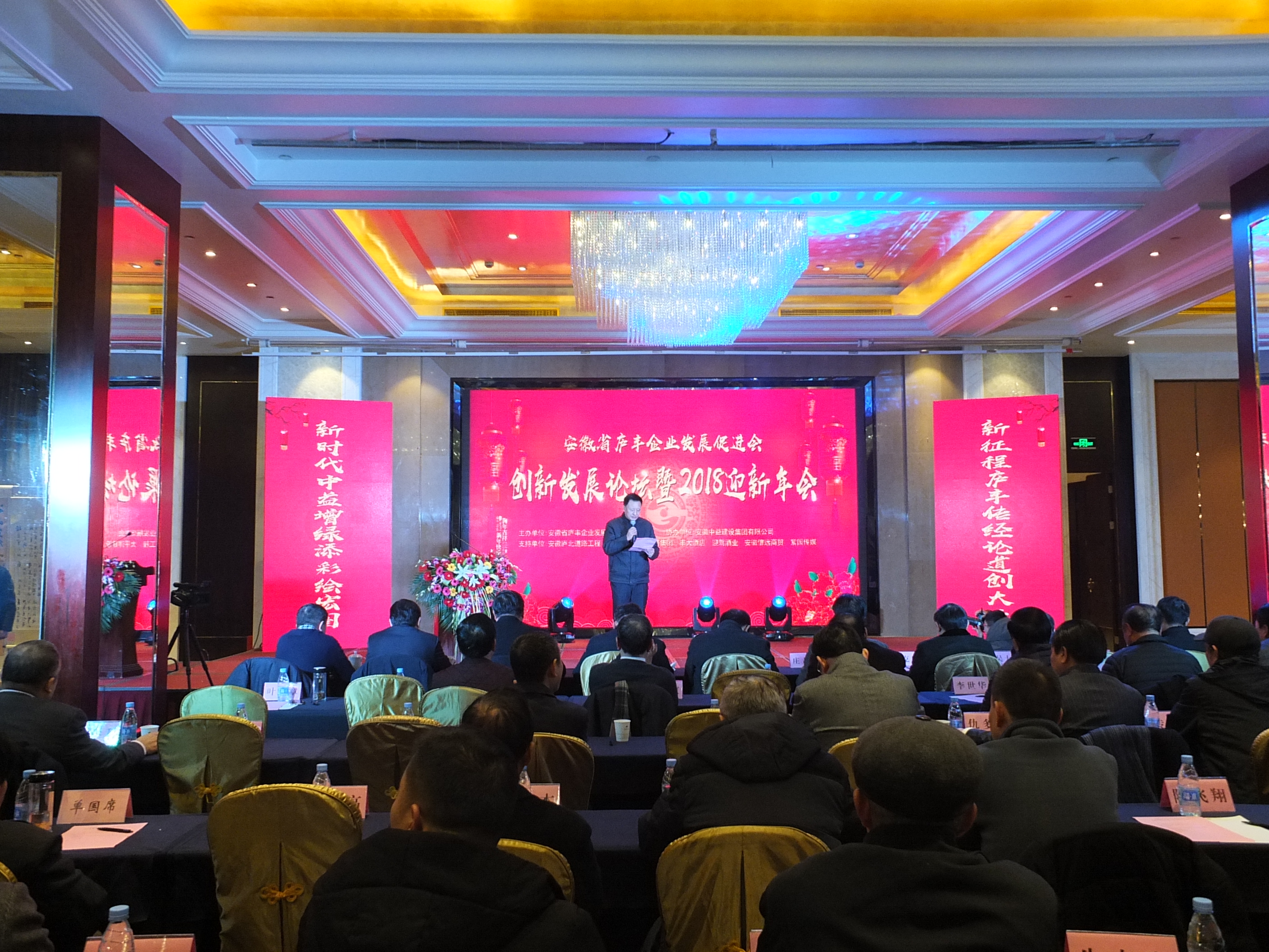 2018年2月2日下午3點30分,安徽省廬豐企業發展促進會創新發展論壇暨2018迎新年會在合肥豐大國際大酒店隆重舉行,現場嘉賓云集,曾在長豐任職的省、市領導、長豐籍知名人士、企業家歡聚一堂,迎新春,敘友情,謀發展。執行會長葉和章主持年會,促進會會長胡志作2017年工作報告。