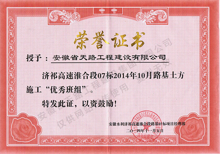 • 濟祁高速淮合段07標2014路基土方施工“優秀班組”