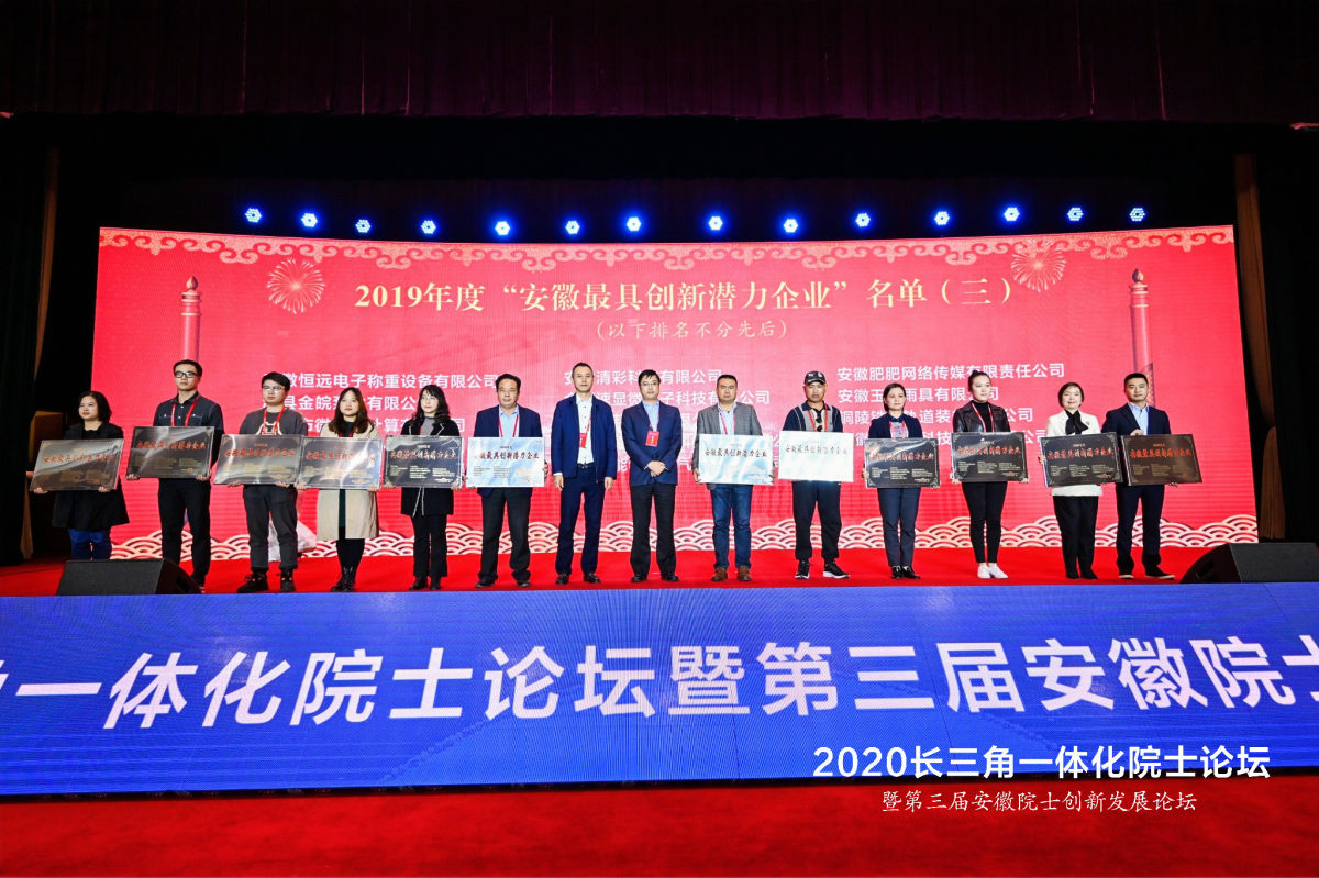當天下午,論壇現場還舉行了2019年度安徽創新企業100強發布會暨頒獎儀式,此次頒獎是為加快實施創新驅動發展戰略,推動創新型企業加快發展,進一步發揮社會組織等服務科技、經濟、創新、發展的作用。姚廣傳董事長作為頒獎嘉賓為2019年度“安徽最具創新潛力企業”代表頒發獎牌。