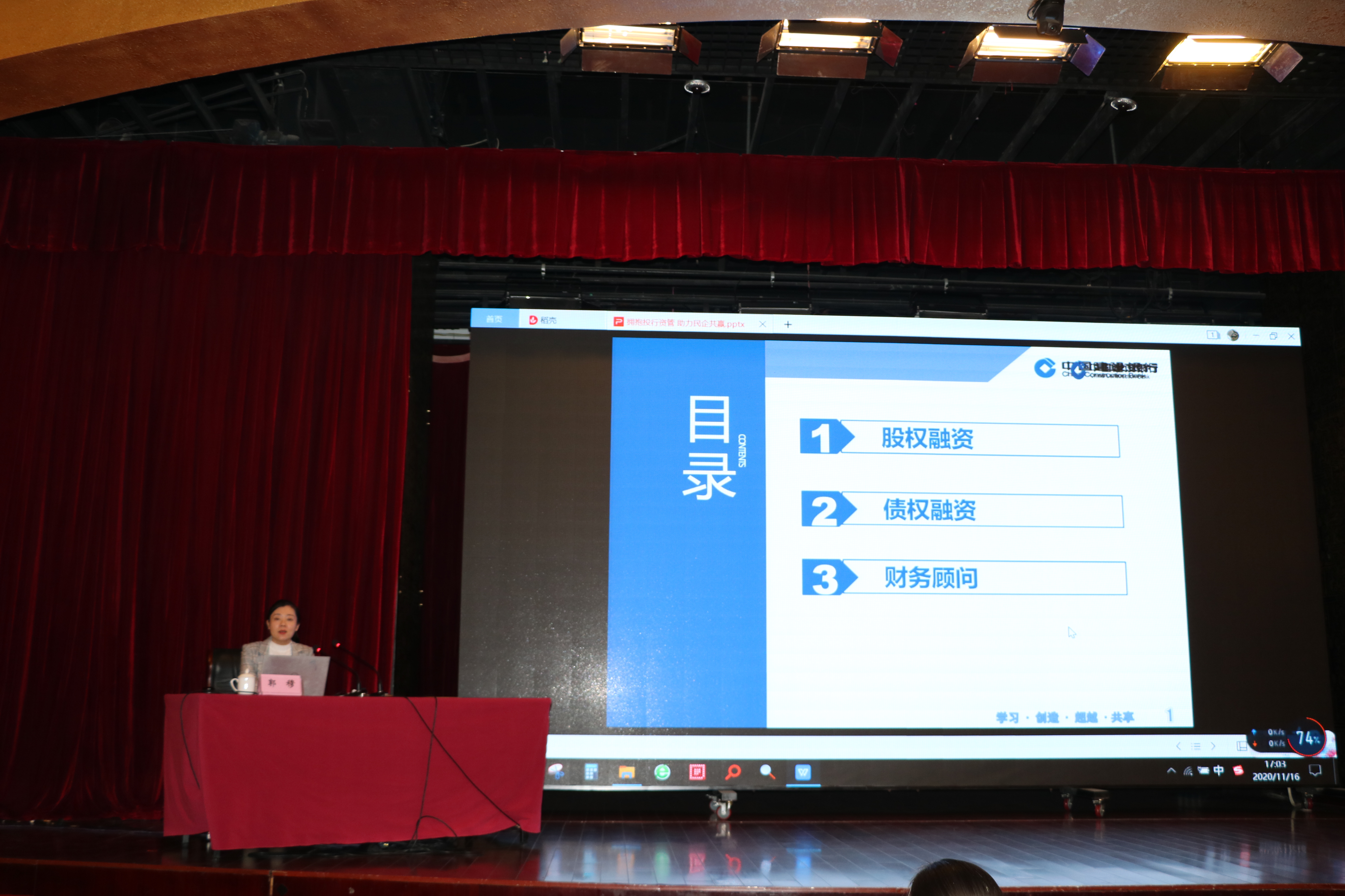 建設銀行安徽省分行普惠金融事業部副科長潘楊楊、公司業務部科長錢亮、投資銀行部副科長郭穆分別就建設銀行小微、大中型企業及投行業務特色服務和政策產品進行了解讀和傳導,并著重介紹了信易貸平臺、政企合作平臺的優惠政策和特色產品。授課內容豐富,政策解讀精準,案例列舉經典,理論實踐結合,實用性強,贏得了參訓人員一致好評。